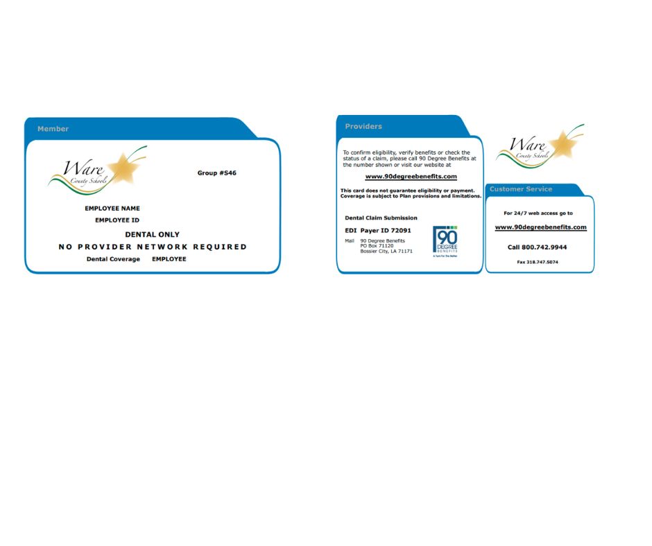 We are pleased to offer two dental plan options, the Simple Standard Plan and the Simple Premium Plan, administered by 90 Degree Benefits. The Simple Dental plan options are unique and very easy to use and understand. The key features of your dental plan options are: